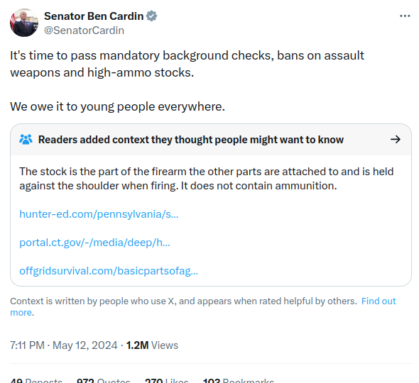 Confusing stocks and magazines? Stocks made of a bunch of cartridges? High-priced ammunition company exchange shares? Who knows? I had a brief impulse to contact Cardin’s office and ask what he was talking about, but…